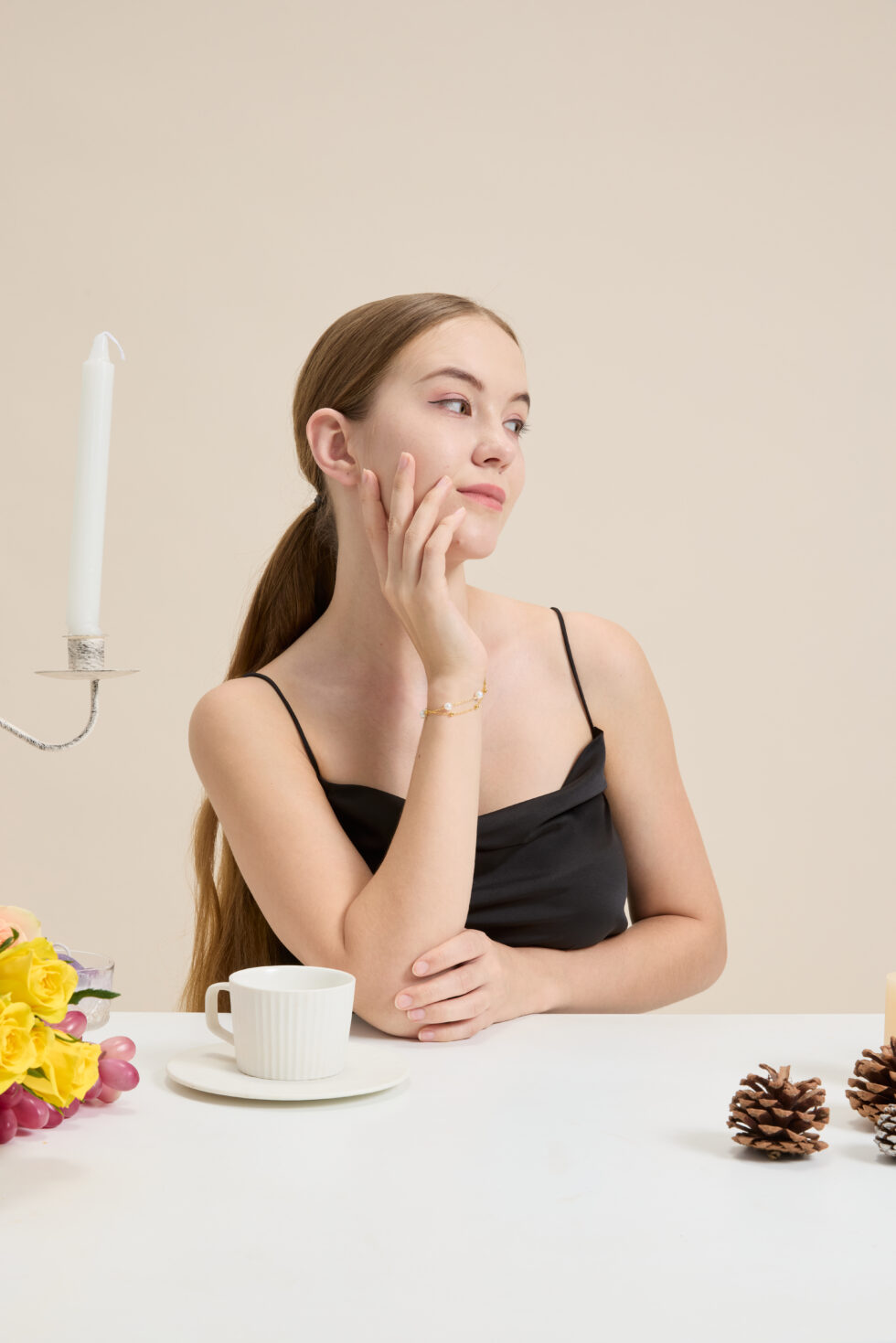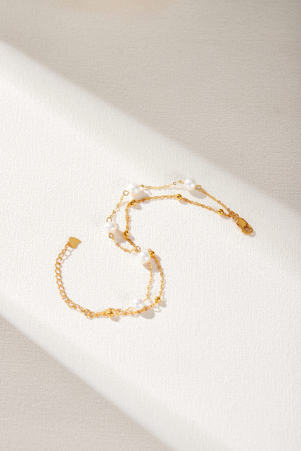 The Crossed Paths Bracelet reflects the beauty of serendipity with a delicate line of freshwater pearls spaced evenly along a golden chain. Each pearl is naturally unique, symbolizing the rare and special moments when lives intertwine.