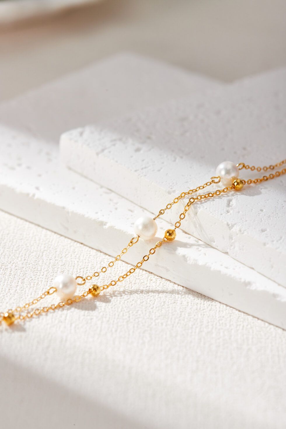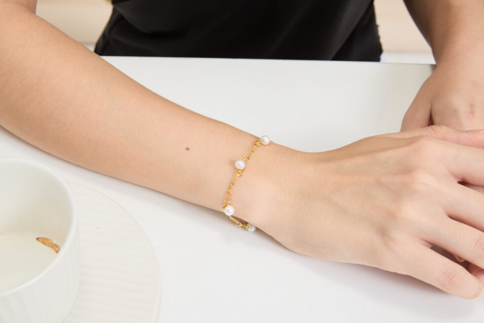 • Avoid perfumes, lotions, and water exposure to protect pearl luster and gold plating.