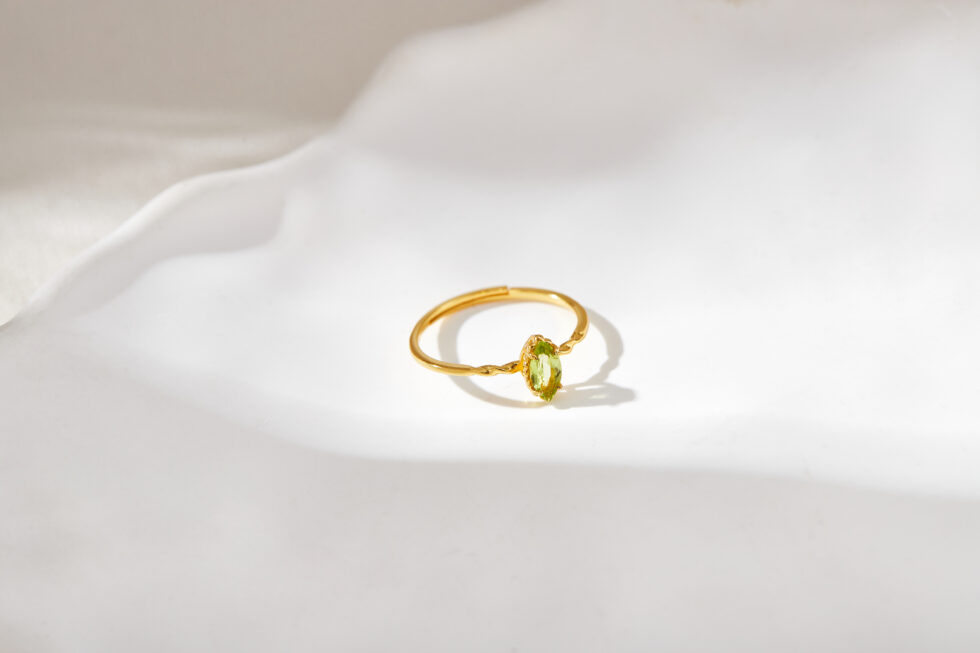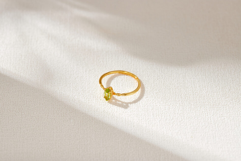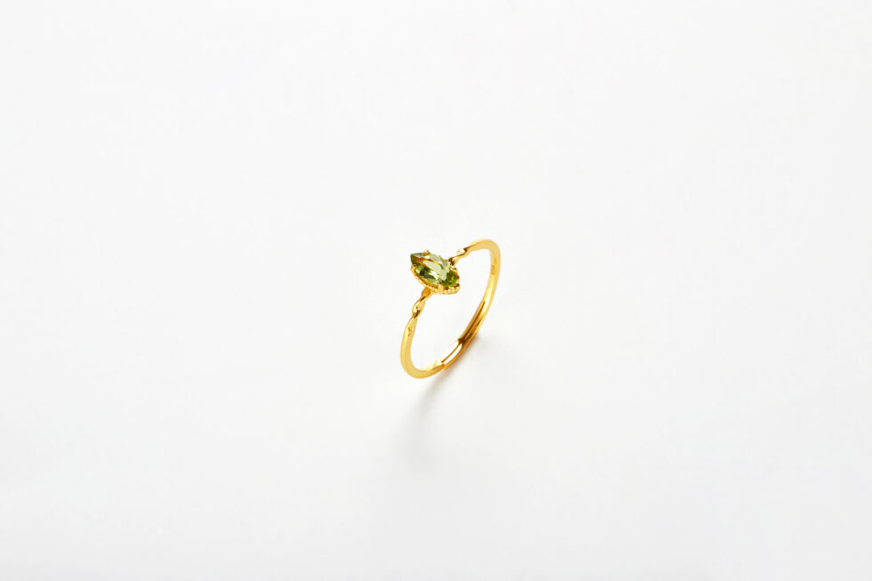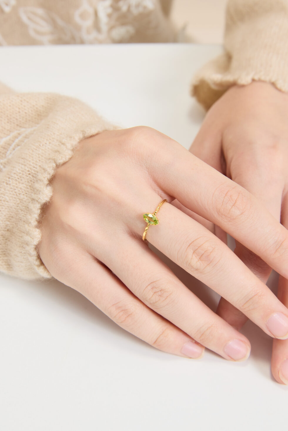 Forest Eye Ring – Natural Olive Quartz in S925 Sterling Silver with 18K Gold Plating