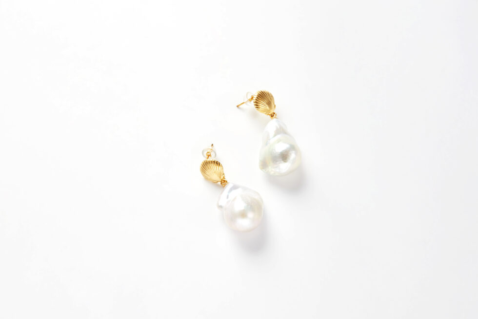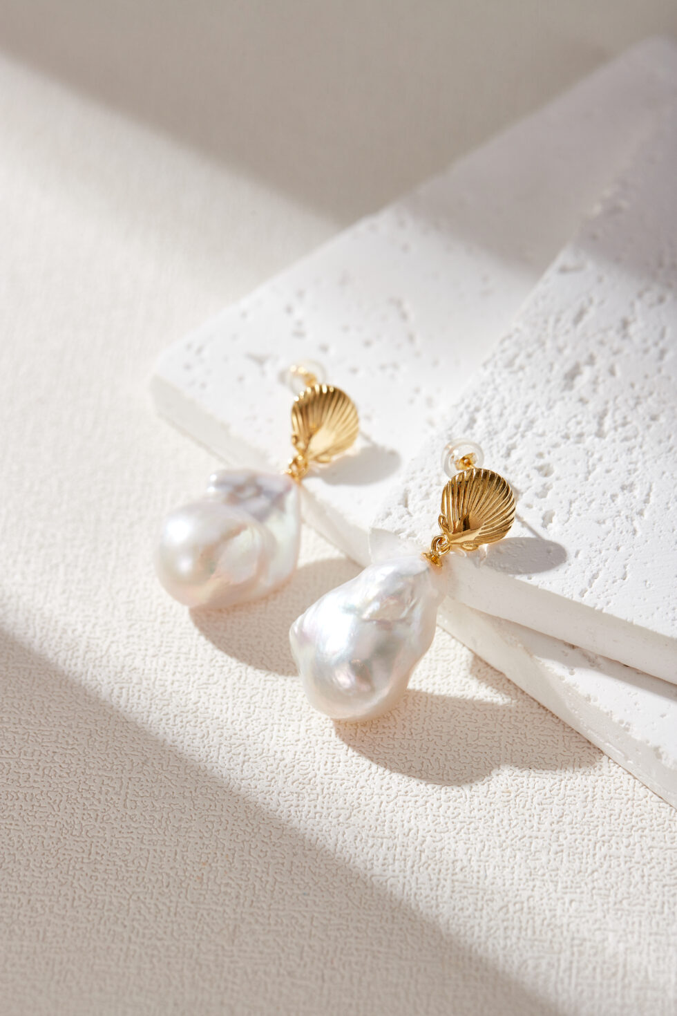 The Sea Gift Earrings capture the essence of the ocean with bold baroque pearls suspended from golden shell studs. Each pearl is naturally shaped, reflecting the mystery and artistry of the sea. Crafted in 925 sterling silver with 18K gold plating, these earrings bring quiet luxury and natural individuality to every look.